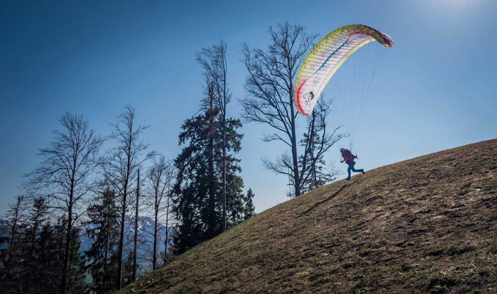 - Leenmateriaal bestaande uit: een paraglider, harnas met reserveparachute, helm en portofoon